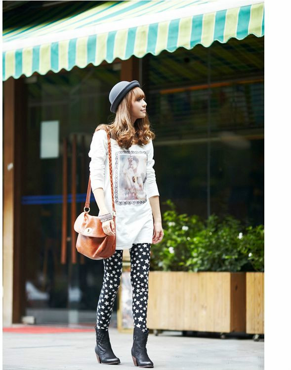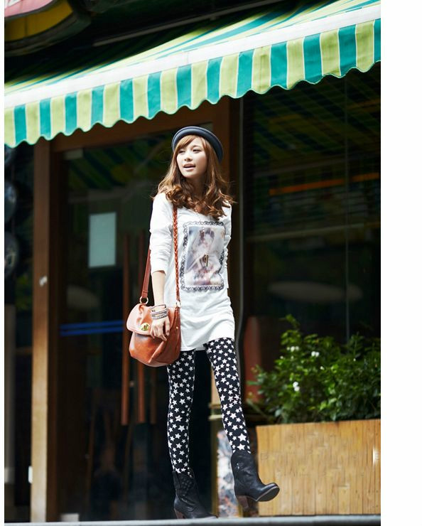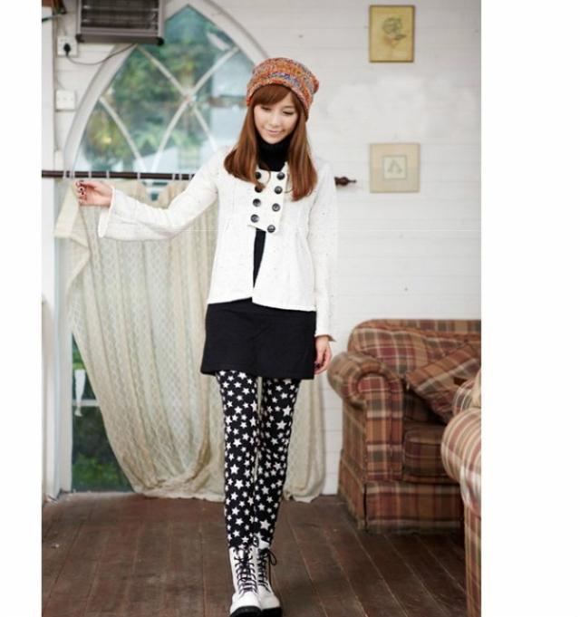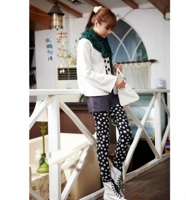 這款星星的打底褲雖然是加厚款,但是穿在身上不會很臃腫哦!