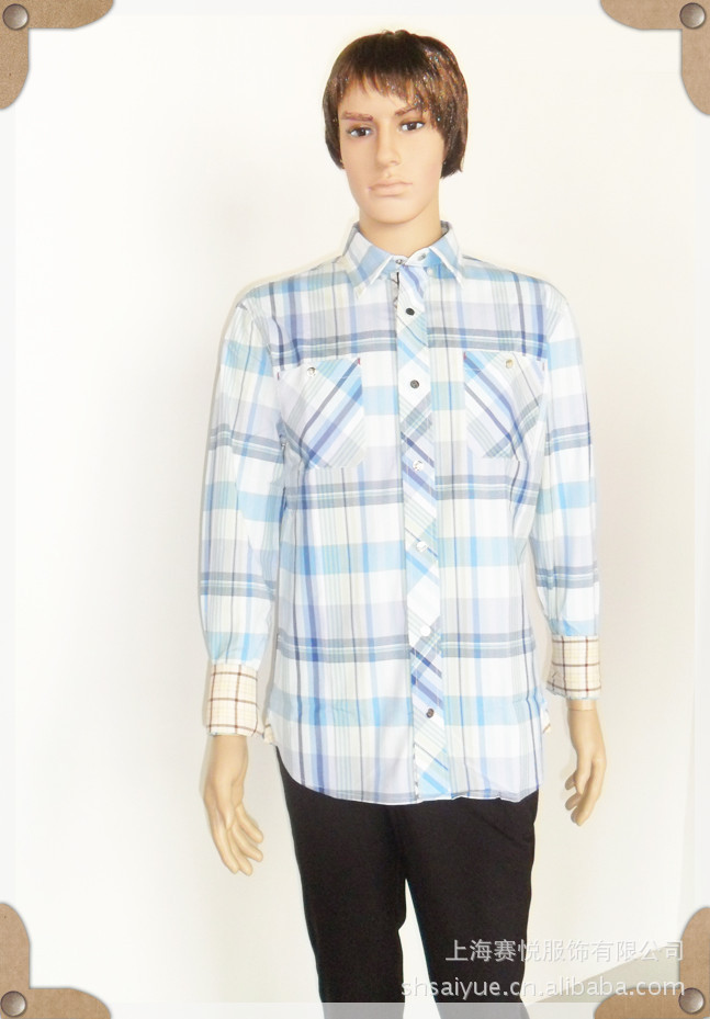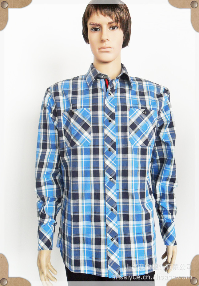 美國COOGL 供應(yīng)服裝 男裝 男式襯衫 藍(lán)黑格【圖】上海賽悅