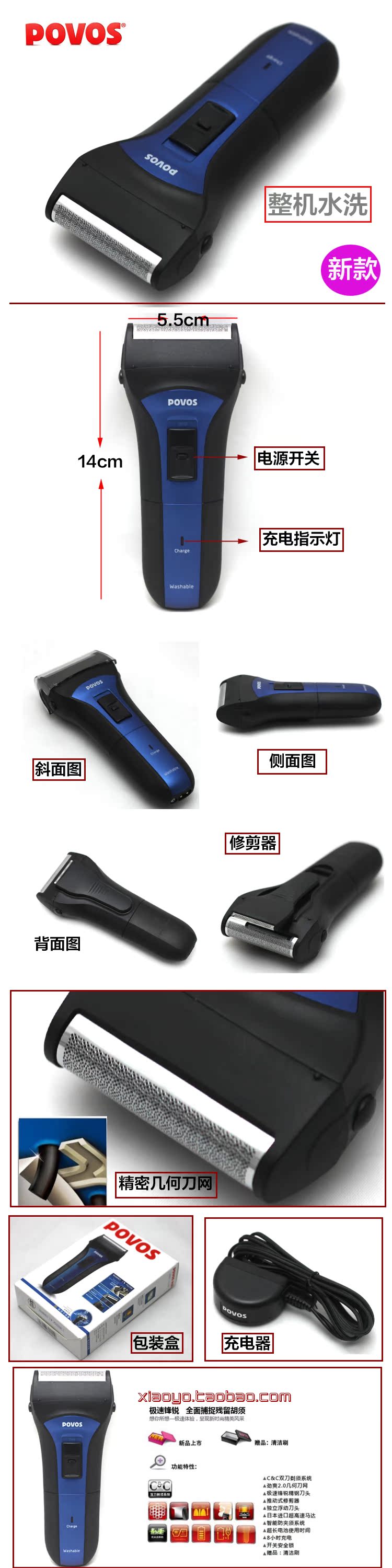 批發(fā)奔騰PS2208全身水洗往復(fù)式剃須刀 奔騰剃須刀 實(shí)體店 包郵