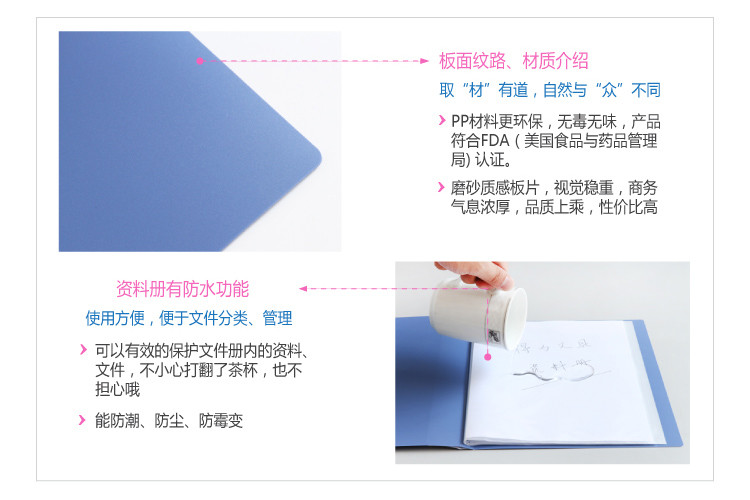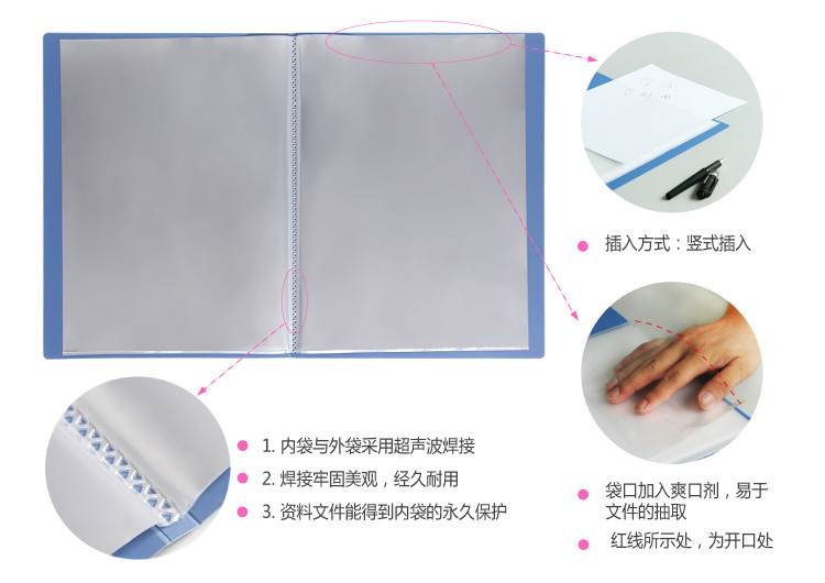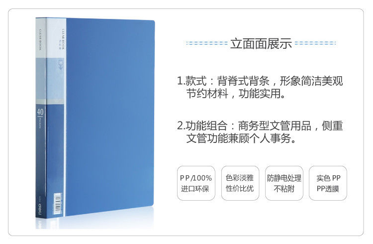 100%進口環保PP材料,色彩淡雅,舒適辦公;防靜電處理,不粘附,適用于文件管理,方便查閱