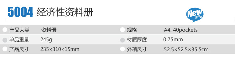 得力(deli) 5004 經濟型A4/40頁資料冊 藍色 10只裝