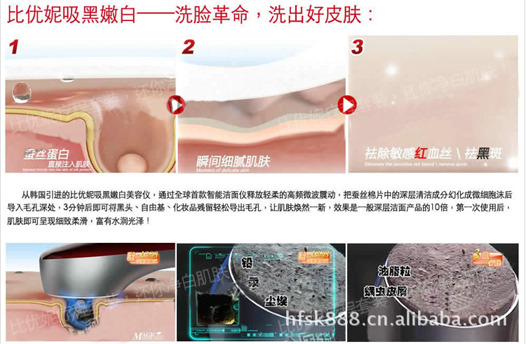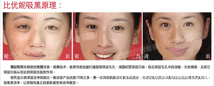 比優妮可以讓皮膚恢復緊質,細滑。充滿光澤。釋放輕柔而頻密的微震潔面、按[mo]技術,能更有效迅速打通面部深層毛孔,激活沉淀深層污垢,吸出深層毛孔中的油脂,化妝殘留,及其它深層污垢從而達到深層潔面的作用
