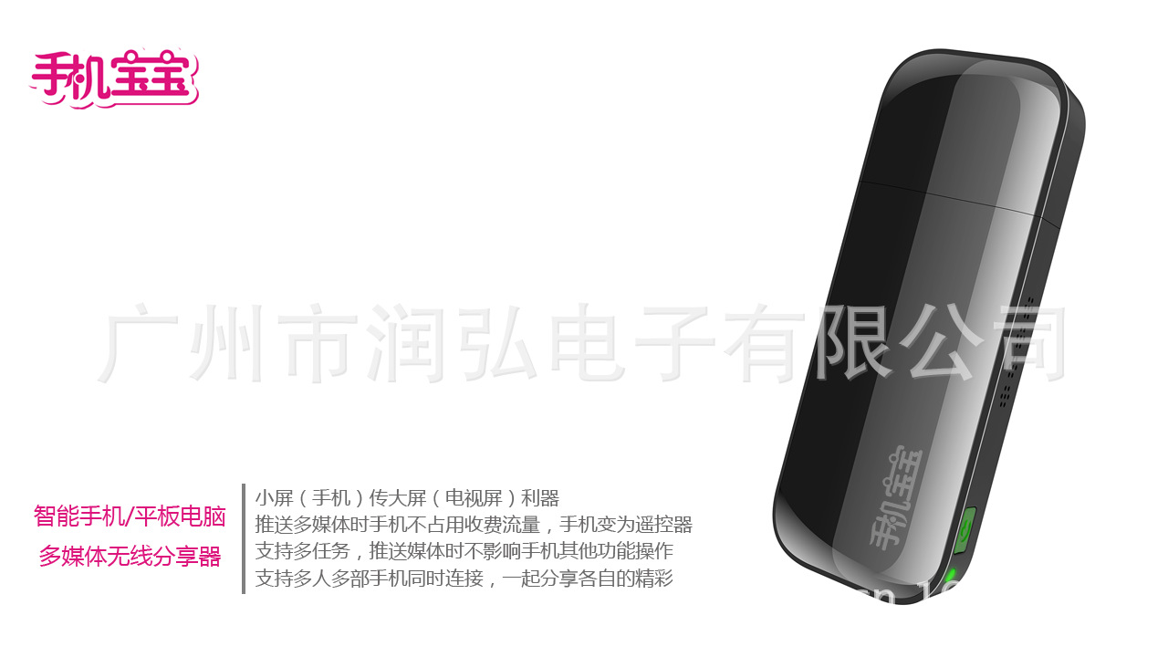 投影機之間屏幕和多媒體內容的互聯互動、遠程控制等功能的智能配件產品。它基于Wi-Fi 2.4G無線傳輸技術,