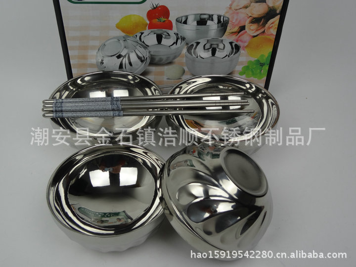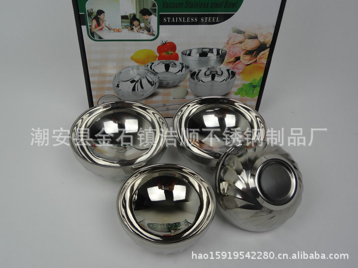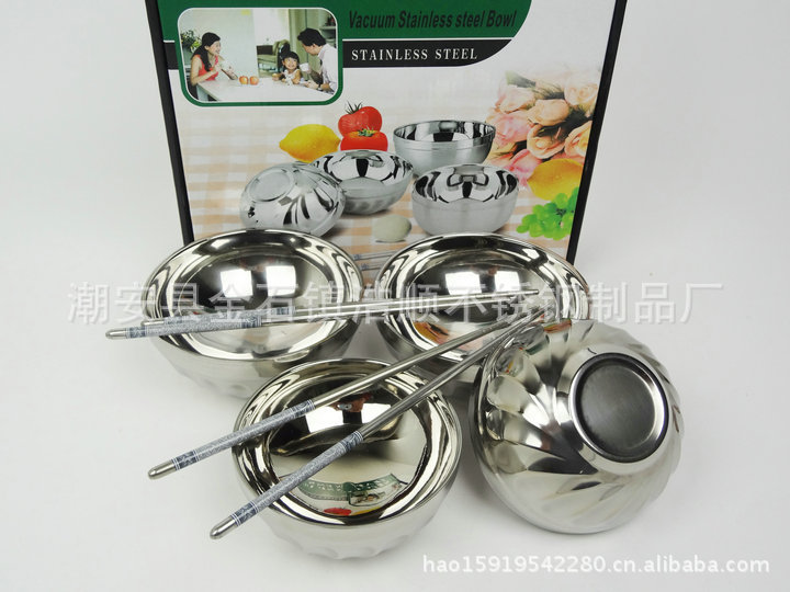 特價促銷不銹鋼雙層隔熱碗 焊邊百合碗12cm套裝碗
