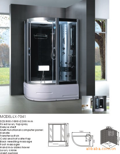 ●進水管道接口在淋浴房背板水龍頭位置后面.電源接口在淋浴房頂端