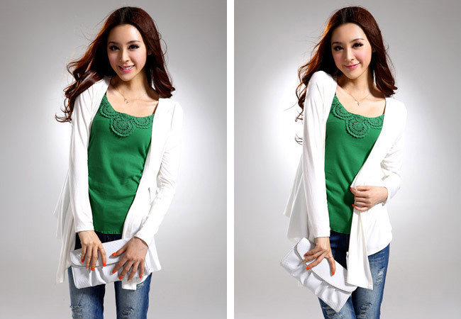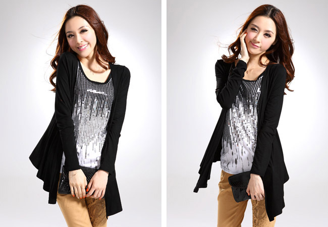 款式說明增長外披,衣門襟垂墜感極好,面料手感柔軟舒服,做工精細其他說明女人在行動,把握夏天將眼球聚焦在你身上,混搭麗人裝,散發魅力必勝法寶哦。忙碌工作裝是你施展風采的好時機。今年大熱的垂墜感增長外披、腰帶,簡單單品讓你熠熠生輝哦……