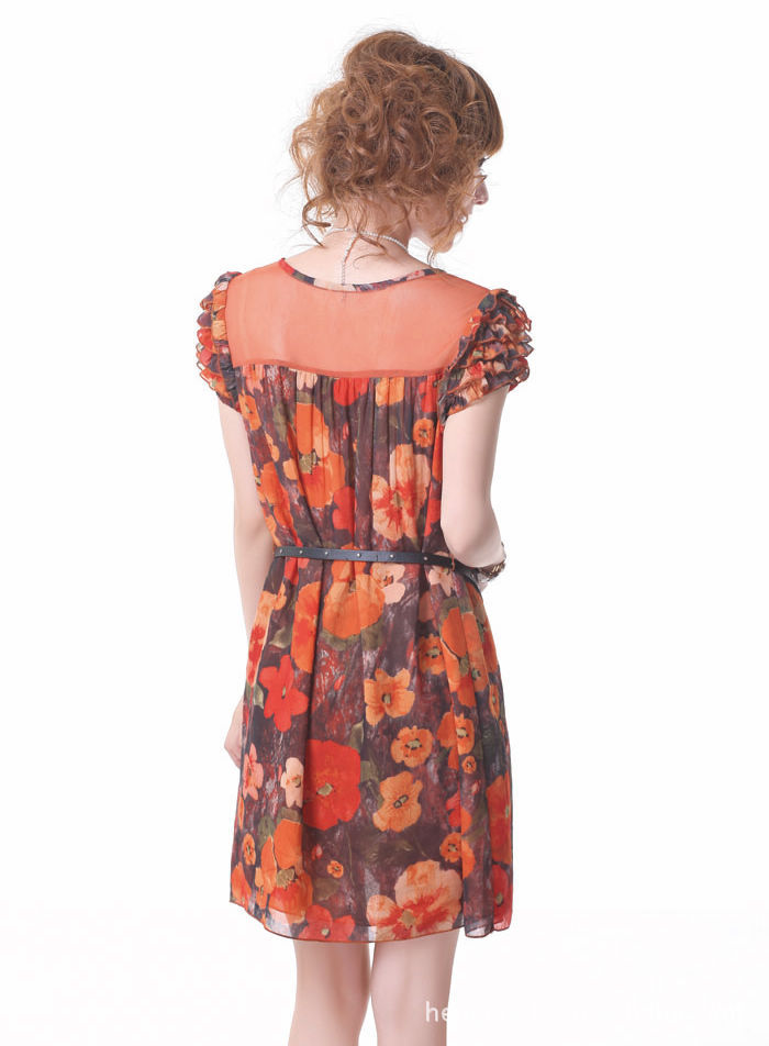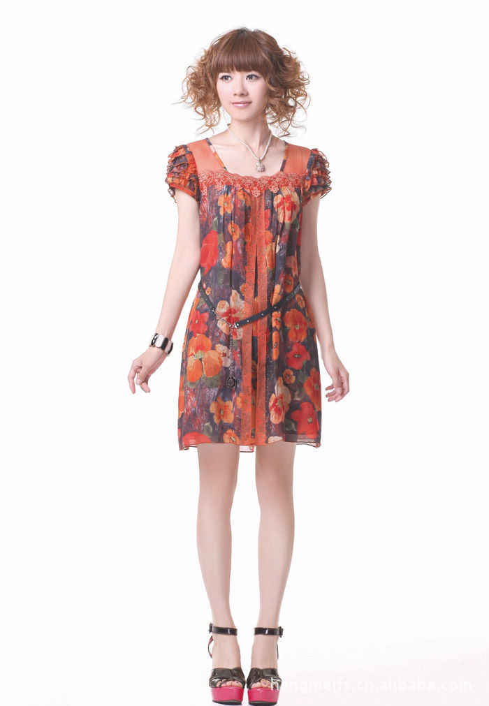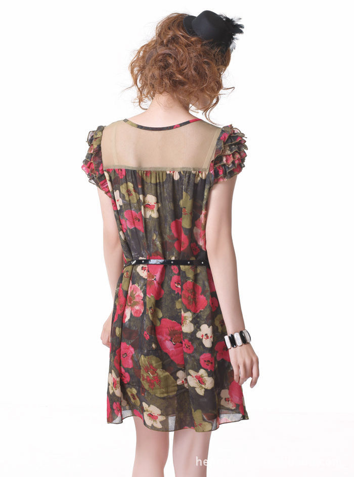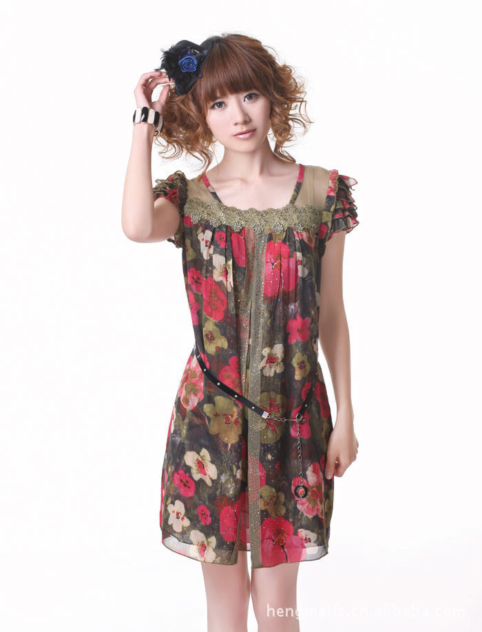 2011熱賣夏裝,瑞麗風格印花淑女桑蠶絲連衣裙 品牌女裝代理加盟