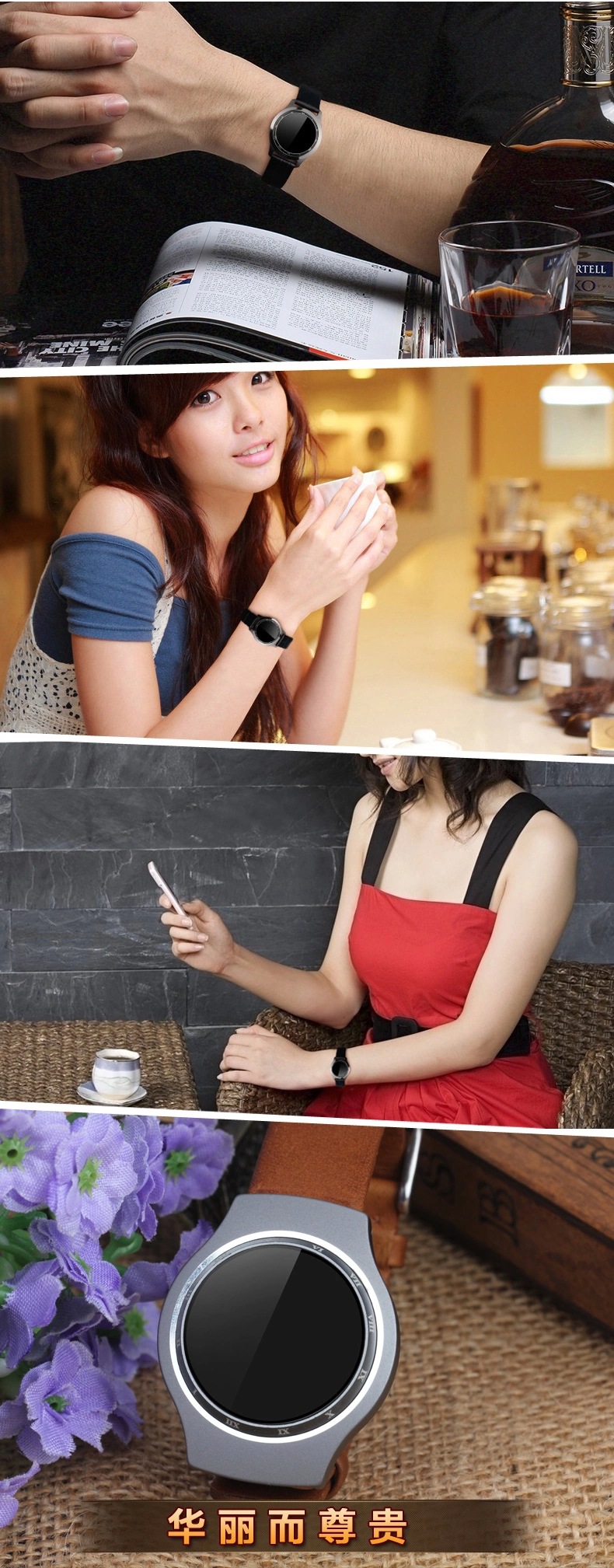 2.采用低功耗處理器,雙模工作方式,更長(zhǎng)的待機(jī)時(shí)間 3.自主開(kāi)發(fā)運(yùn)動(dòng)數(shù)據(jù)算法,提供更好的精度4.表殼采用航空級(jí)鋁合金精加工:拋光、噴砂、氧化及電泳5.特色點(diǎn)膠工藝,IP67防水跌落標(biāo)準(zhǔn)6.表帶采用PU(polyurethane)材料7.多種配件可選,滿足不同佩戴方式8.電池類型:2032紐扣電池9.顔色:銀灰、藍(lán)色、香檳10.外觀尺寸 直徑27.8x厚度8.9毫米(不計(jì)表帶尺寸)Specifications防水標(biāo)準(zhǔn)IP-x7外觀材質(zhì)前殼、后殼:全鋁合金,手帶:軟膠主芯片EFM32G222FX藍(lán)牙芯片TI2541藍(lán)牙版本4.0BLE(低功耗)內(nèi)存64KB RAM 64KB ROM傳感器重力加速傳感器電池CR2032(標(biāo)準(zhǔn)紐扣電池)時(shí)鐘指示12pcs LED燈軟件功能計(jì)步、測(cè)距、卡路里消耗管理、睡眠管理、運(yùn)動(dòng)量目標(biāo)管理、時(shí)鐘顯示 防丟功能 測(cè)試心率 GPS定位 溫度儀 來(lái)電提醒 短信提醒 朋友社交排名 ,支持安卓4.3以上系統(tǒng),IOS支持iphone4S以上機(jī)型。購(gòu)買的朋友請(qǐng)注意這點(diǎn)!