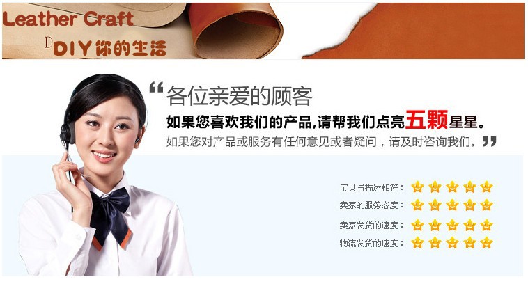 7天無理由退貨,但您需要保證退回的商品沒有被使用過而且不影響我們第二次銷售,由于個人原因(非產(chǎn)品原因)造成產(chǎn)品退換,運(yùn)費(fèi)需要由您自行承擔(dān)。另外,因長途跋涉退回來的產(chǎn)品在途中破損以及包裝箱無法再次使用,我們需要扣除您響應(yīng)的費(fèi)用,還望親們理解!郵資說明 About postage本店使用中通快遞,還可發(fā):圓通,申通,韻達(dá),EMS。運(yùn)費(fèi)請查看“一口價”下面的運(yùn)費(fèi)模板,均按實(shí)際收費(fèi)設(shè)置,多件商品只收取一次郵費(fèi)!江浙滬一般第二天到達(dá),省外2-4天左右到達(dá)。如需要更快的快遞請選擇“順豐快遞”,安全高效,江浙滬12元,其他地區(qū)22元。