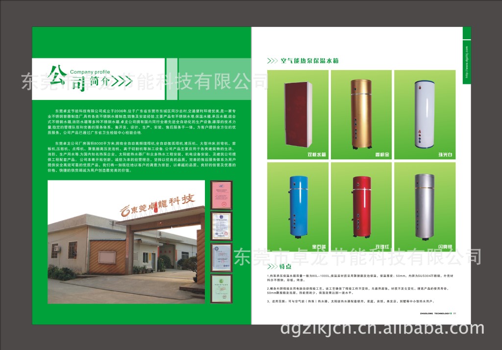 東莞市卓龍節(jié)能有限公司專業(yè)生產(chǎn)100L-1000L承壓式保溫水箱,分壁掛式和立式兩種。適用于太陽能熱水系統(tǒng)、熱泵熱水系統(tǒng)、鍋爐熱水系統(tǒng)、熱水爐和各種需要液體保溫的場所。為國內(nèi)外熱水器、熱泵熱水器廠家生產(chǎn)配套,讓有志于熱水器行業(yè)的廠家在市場上無后顧之憂。