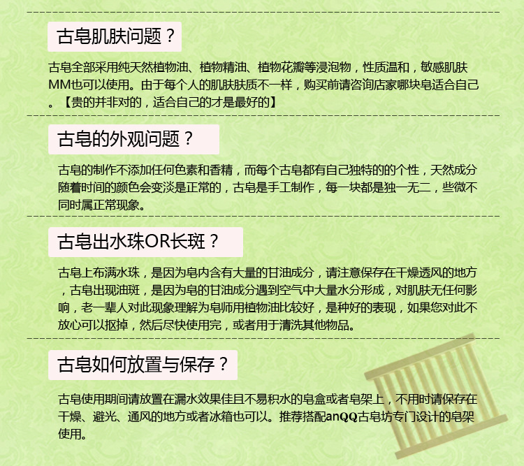 相對于市場上混亂的敘利亞古皂市場,不久的將來相信國人們會更加的認可anqq綠茶古皂。