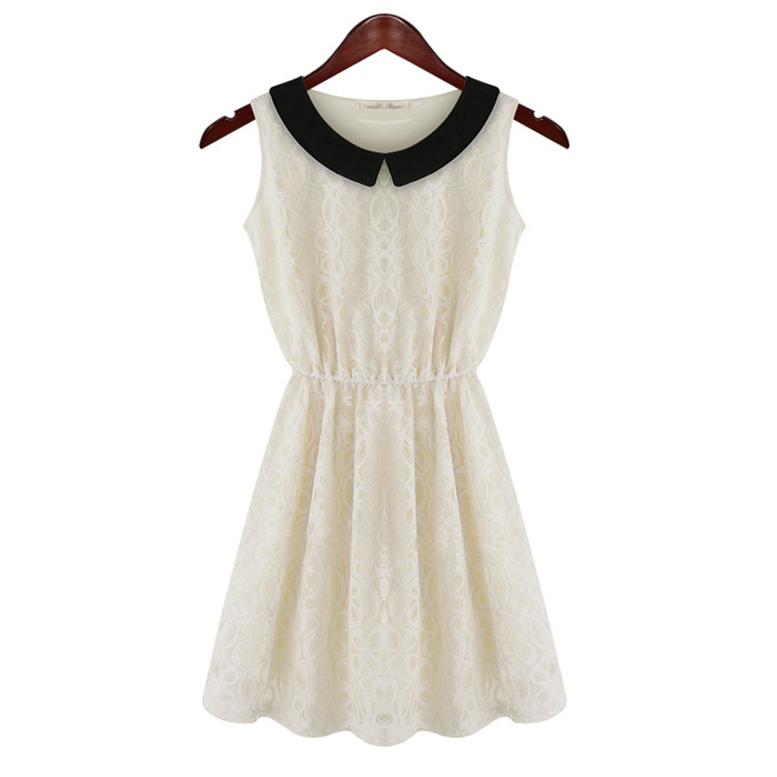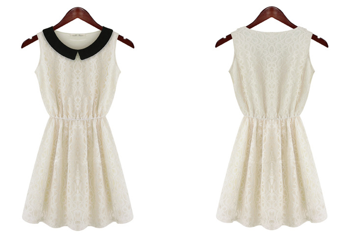 2013新款 收腰蕾絲鉤花娃娃領 無袖連衣裙