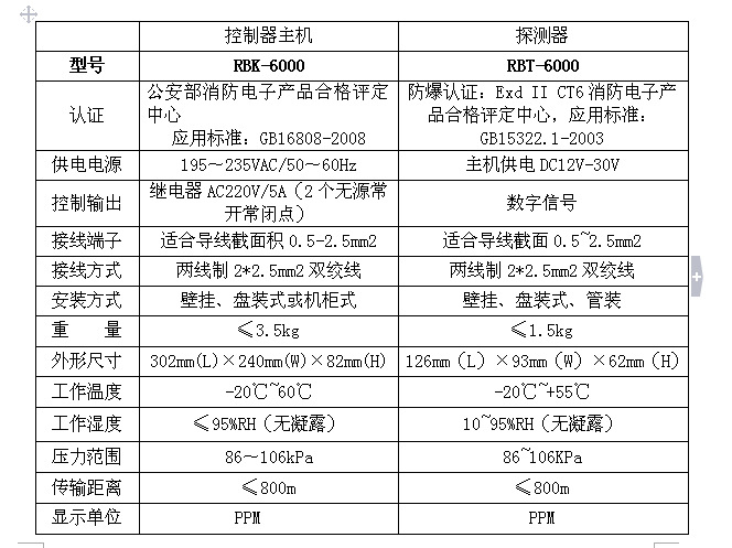◆ 配套使用的探測器:RBT-6000-F、RBT-6000-FX型氣體探測器;