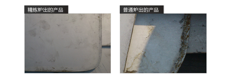 可以看出,精煉爐和普通爐所生產的產品的,材質方面的區別。精煉爐出來的產品整體色澤比較好,普通爐