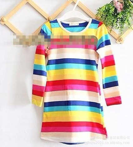 非??蓯鄣囊豢钐籽b,鮮艷亮麗的彩虹條紋連衣裙,加上一個大愛心天使的小坎肩,不讓人不注目哦,