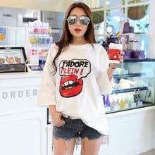 聚劃算推薦:2015韓國東大門夏季新款韓版時尚嘴唇亮片字母印花純棉短袖T恤女