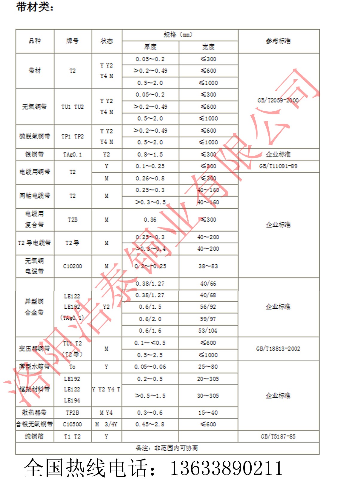 洛陽浩泰銅業有限公司可生產的紫銅帶規格有