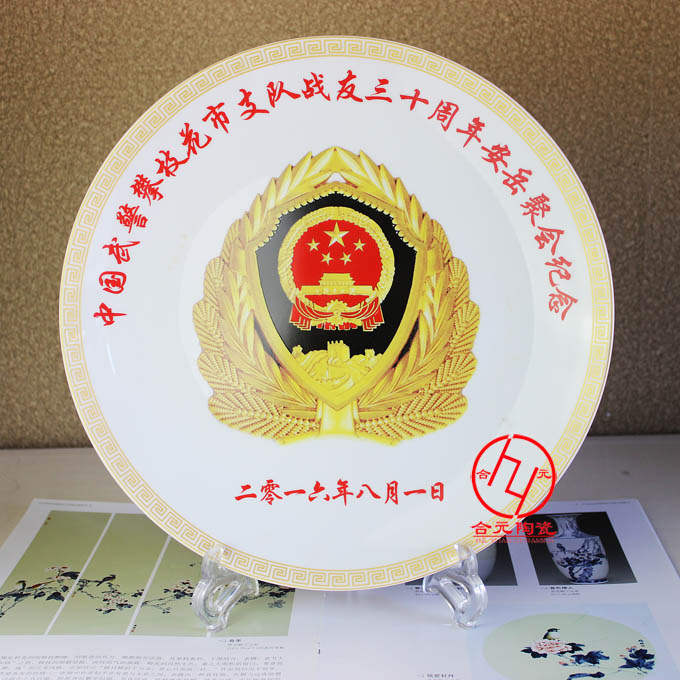 景德鎮合元陶瓷廠專業生產陶瓷擺盤,家居擺設裝飾品陶瓷擺盤。陶瓷擺盤的規格有15cm-40cm不等。瓷質有白瓷、高白瓷、骨質瓷等不同質量的瓷質。可以根據客戶的要求定做不同規格、不同瓷質、不同畫面的禮品陶瓷白案。一塊陶瓷擺盤配置一個高檔瓷器錦盒包裝和一個盤架就是一套精美的陶瓷禮品了,適合于各種大型紀念活動禮品、家居裝飾品、校慶活動禮品、慶典活動禮品。本廠生產的手繪新彩陶瓷擺盤,色彩豐富,款式眾多。圖案新穎,寓意非凡。適合各種商務禮品的贈送。可以接受小批量定單。我們自己生產,時間易把握,可以承諾在保證質量的前提下做到最短時間內交貨。